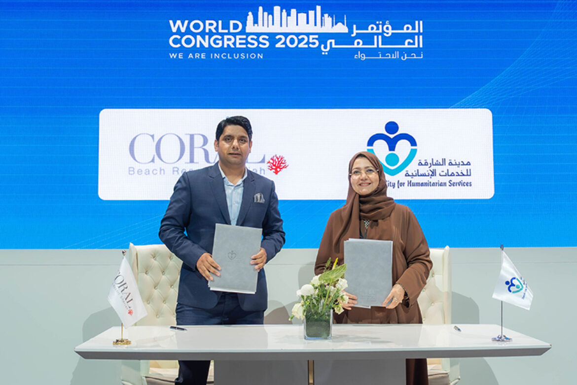 Coral Beach Resort Sharjah is proud to announce a new partnership with Sharjah City for Humanitarian Services. A Memorandum of Understanding (MOU) was officially signed at the World Congress 2025 – We Are Inclusion, strengthening the commitment to inclusivity and empowerment.